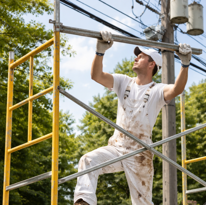 – Monte andaimes a uma distância segura dos fios e nunca deixe vergalhões e calhas próximo à rede de energia;