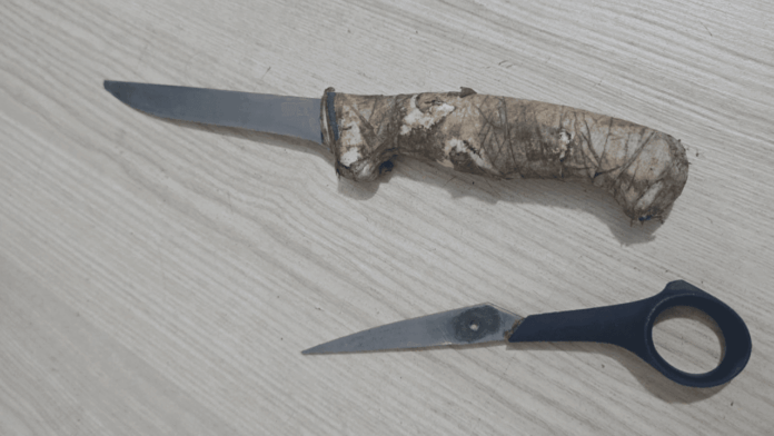 Com o autor foram encontradas uma faca e uma tesoura, sendo a faca manchada de sangue. Diante da situação, o homem recebeu voz de prisão e foi conduzido à Central de Flagrantes, onde foi enquadrado no crime de homicídio tentado e permaneceu à disposição da Justiça.