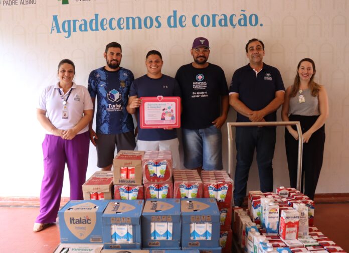 Um grupo de amigos da cidade de Elisiário doou cerca de 700 litros de leite ao Hospital de Câncer de Catanduva. Os voluntários foram recebidos pelo gerente do setor de Captação de Recursos da Fundação Padre Albino, Júlio Cesar Luiz, e por Lígia Benites, da área de Relações Institucionais.