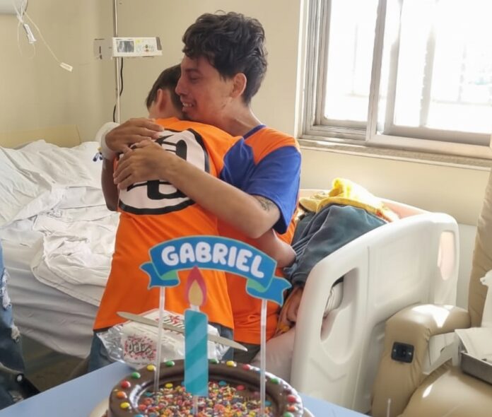 Um reencontro repleto de emoção marcou o dia 21 de outubro, no Hospital Padre Albino (HPA). Após mais de 50 dias internado, vítima de acidente automobilístico, o paciente Alexandre pôde rever o filho, que completou 11 anos em outubro. A visita especial foi organizada pela equipe multiprofissional do hospital como parte do projeto de humanização “Feliz Aniversário”, que busca proporcionar momentos afetivos e de acolhimento aos pacientes e familiares durante o período de internação.